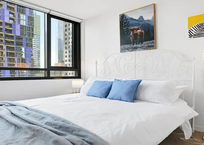Cosy 2 Bedroom Cbd Retreat With Pool, Sauna And Sky Lounge City Views Melbourne appartementen zijn in de Melbourne CBD wijk van Melbourne, op 300 meter verwijderd van het Melbourne Central en op sechts 25 minuten te voet van het Olympic Park Stadium, dat voor sportliefhebbers wordt aanbevolen. Het appartement ligt op een klein stukje lopen van het Ian Potter Centre en heeft een binnenzwembad, een overdekt zwembad.